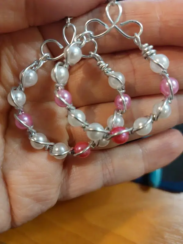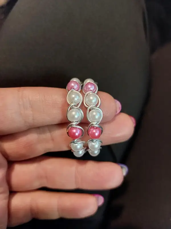 Prachtige handgemaakte wire-wrapped hoops met zachtroze en witte parelkralen. De oorbellen zijn voorzien van RVS (roestvrij staal) oorhaken, ideaal voor gevoelige oren! Ze zijn lichtgewicht, uniek en perfect voor elke gelegenheid.